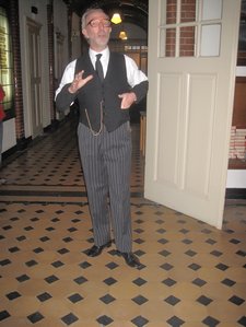 Op een speelse manier had auteur/regisseur Marijke Kots een aantal doopsgezinde personen opgevoerd, waaronder Pieter Teyler van der Hulst (de grondlegger van het museum) en martelares Anneken Ogiers. Verbindende figuur, de 20ste-eeuwse koster Theo Zeilmaker, leidde ons rond en stelde de overige personen aan het publiek voor.