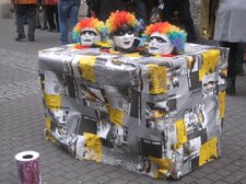 Overal zag je ook nog de living statues, geen evenement kan er meer buiten, sommige met wonderbaarlijke en onbegrijpelijke constructies. Verrassende straatacts, reuzenrad, zweefmolen en talrijke tentjes met Glühwein maakten een bezoek aan Düsseldorf tot een feest voor jong en oud.