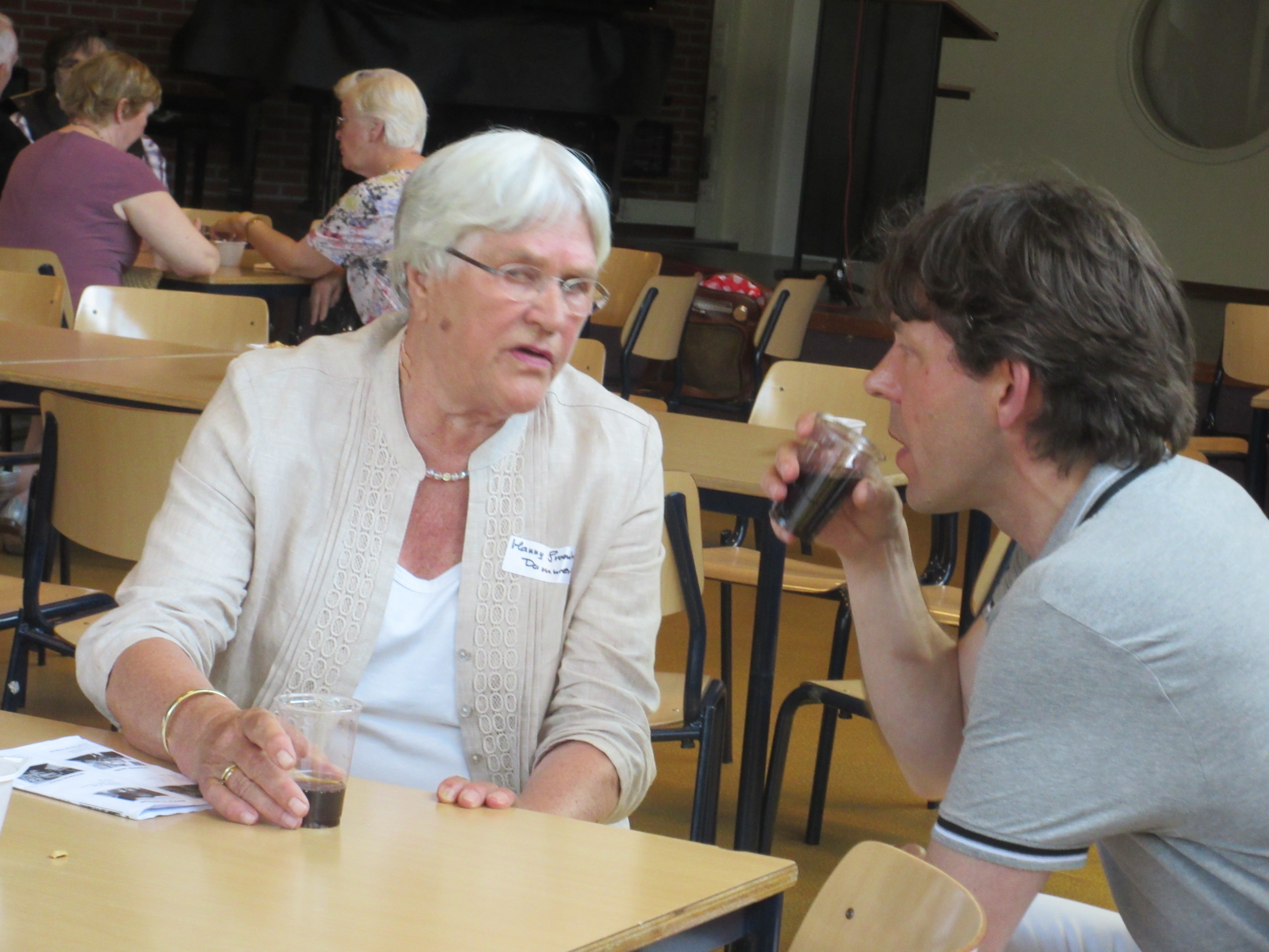We werden verwelkomd met een glas (vroegtijdig ingeschonken) bubbels? waarna eenieder zich spoedde naar het lokaal waar oude klasgenoten te vinden waren.