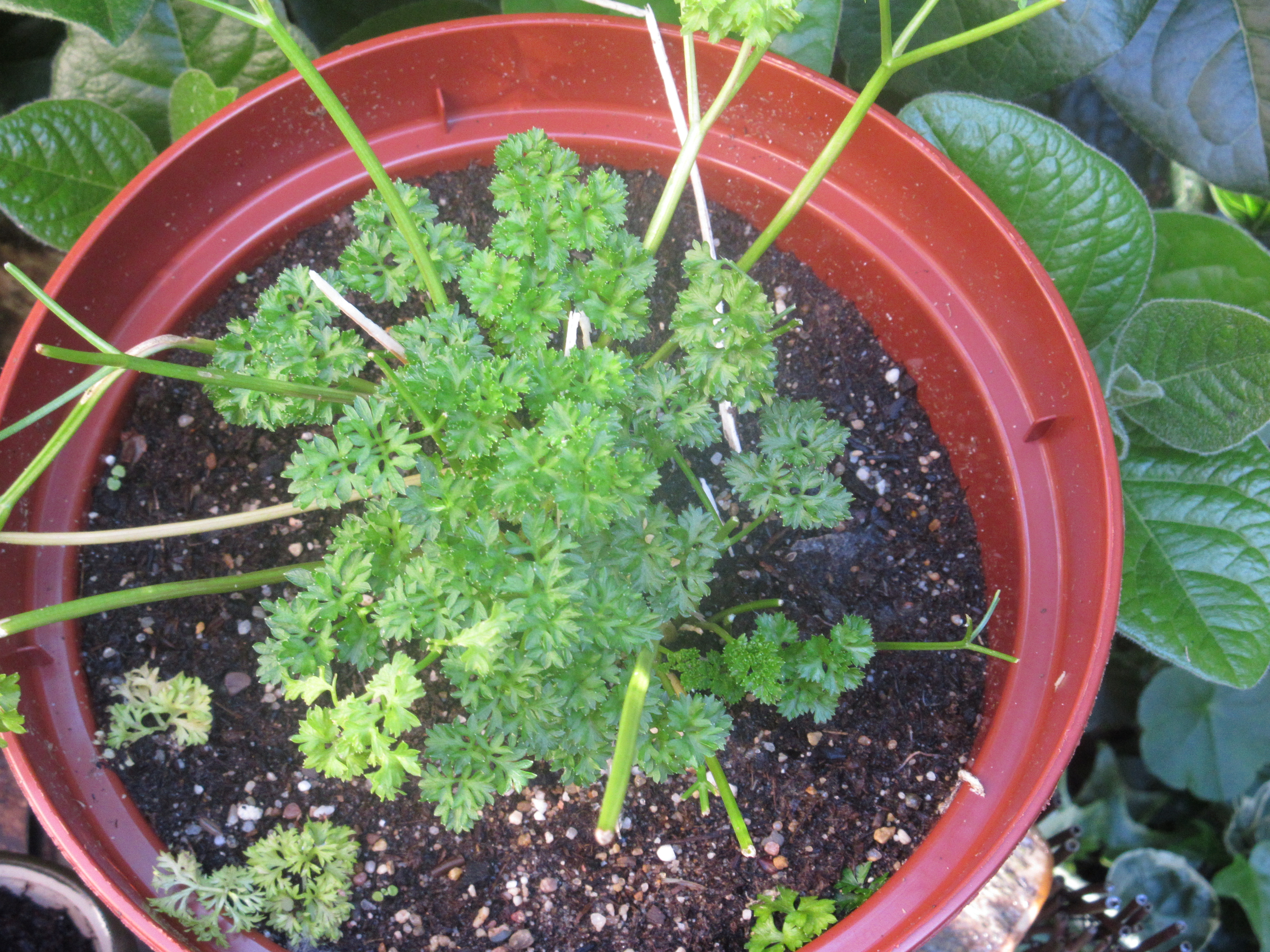 Altijd dankbaar, zo’n pot vlak bij de achterdeur. De peterselie uit de winkel kan hier qua smaak niet aan tippen!