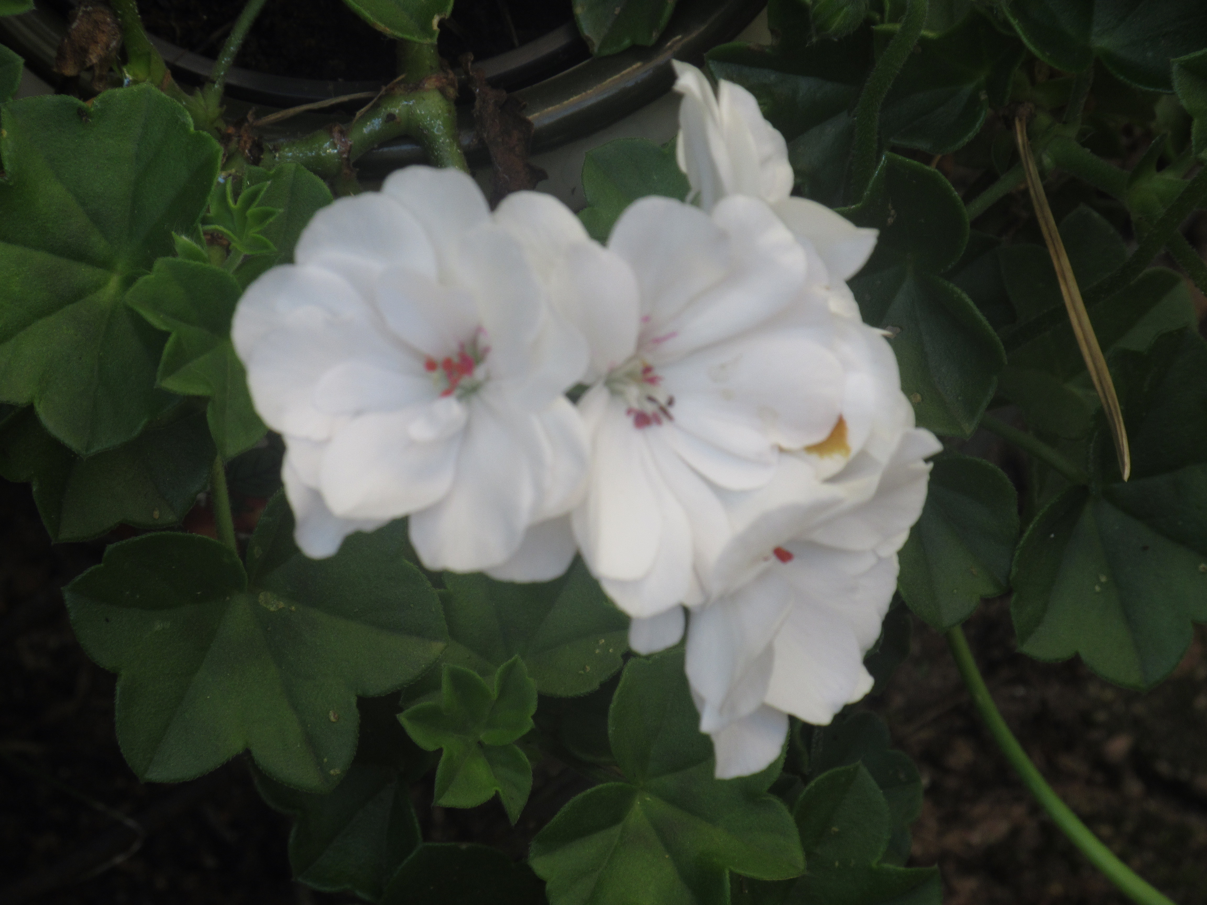 Van alle geraniums vind ik de witte nog het mooist omdat ze in het schemerdonker zo mooi oplichten.