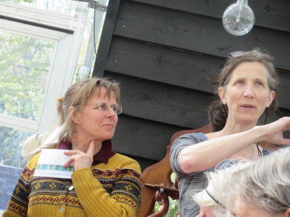 Na een korte inleiding van Elbrich gingen de deelnemers de tuin in om inspiratie op te doen, helaas al snel naar binnen gejaagd door een hevige regenbui.