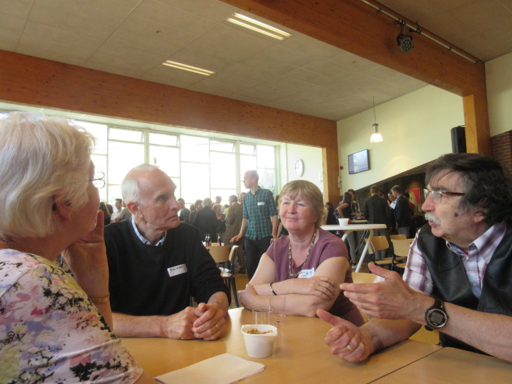 We werden verwelkomd met een glas (vroegtijdig ingeschonken) bubbels? waarna eenieder zich spoedde naar het lokaal waar oude klasgenoten te vinden waren.